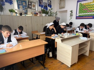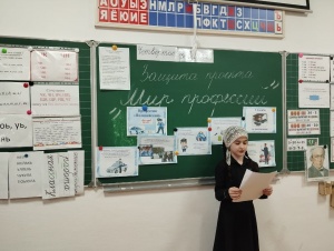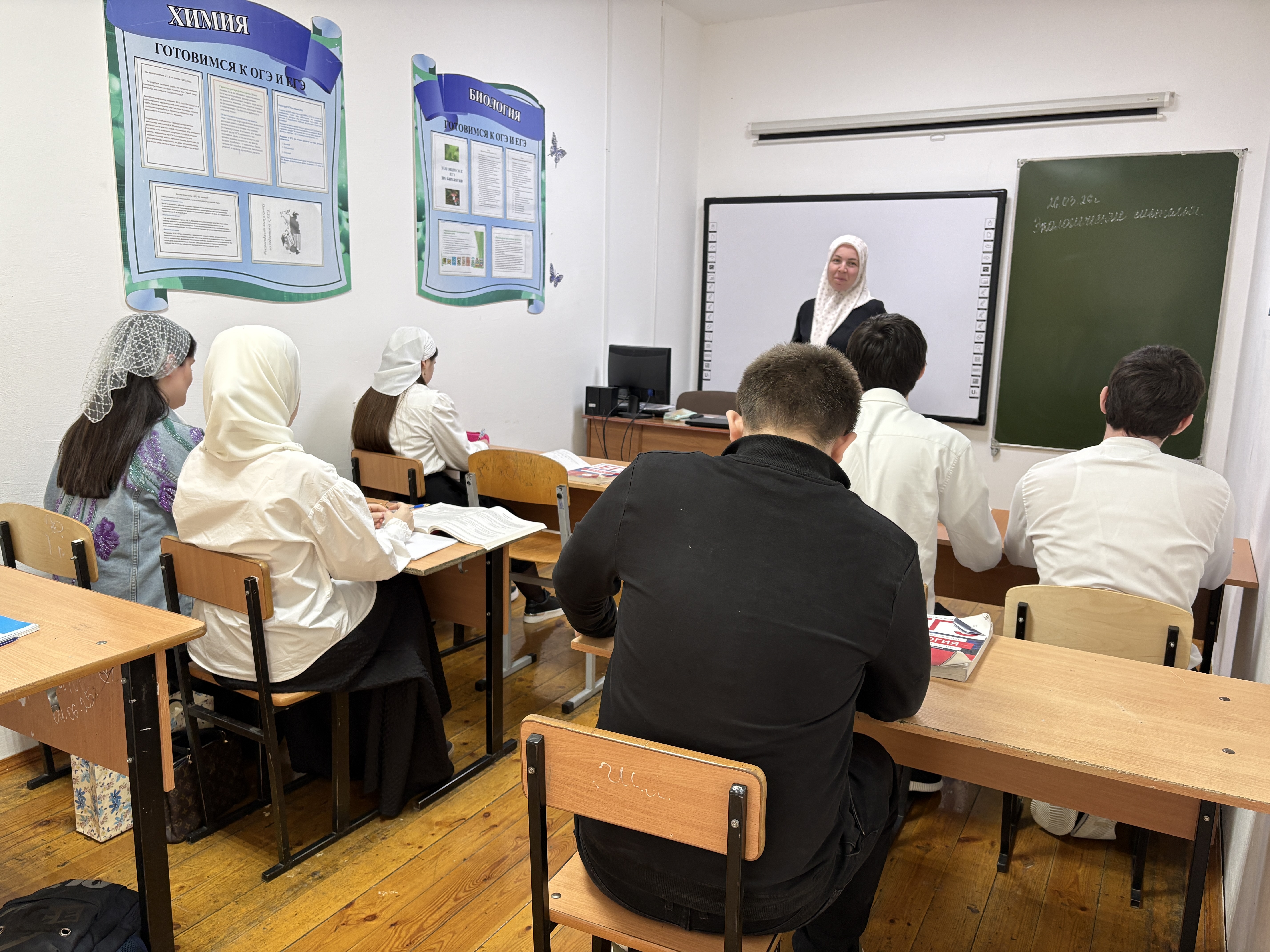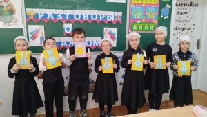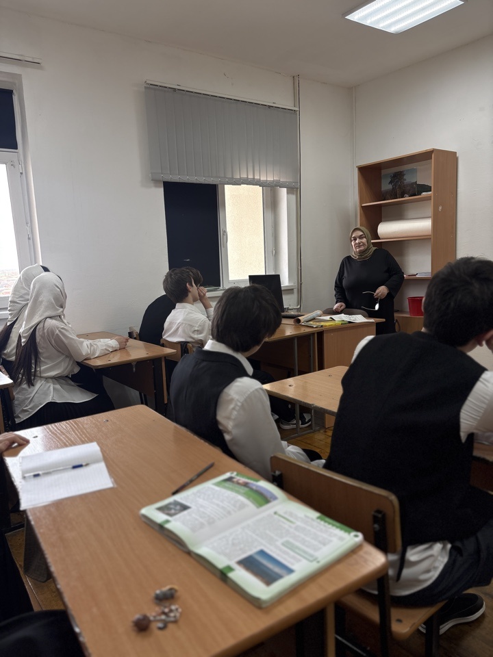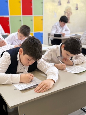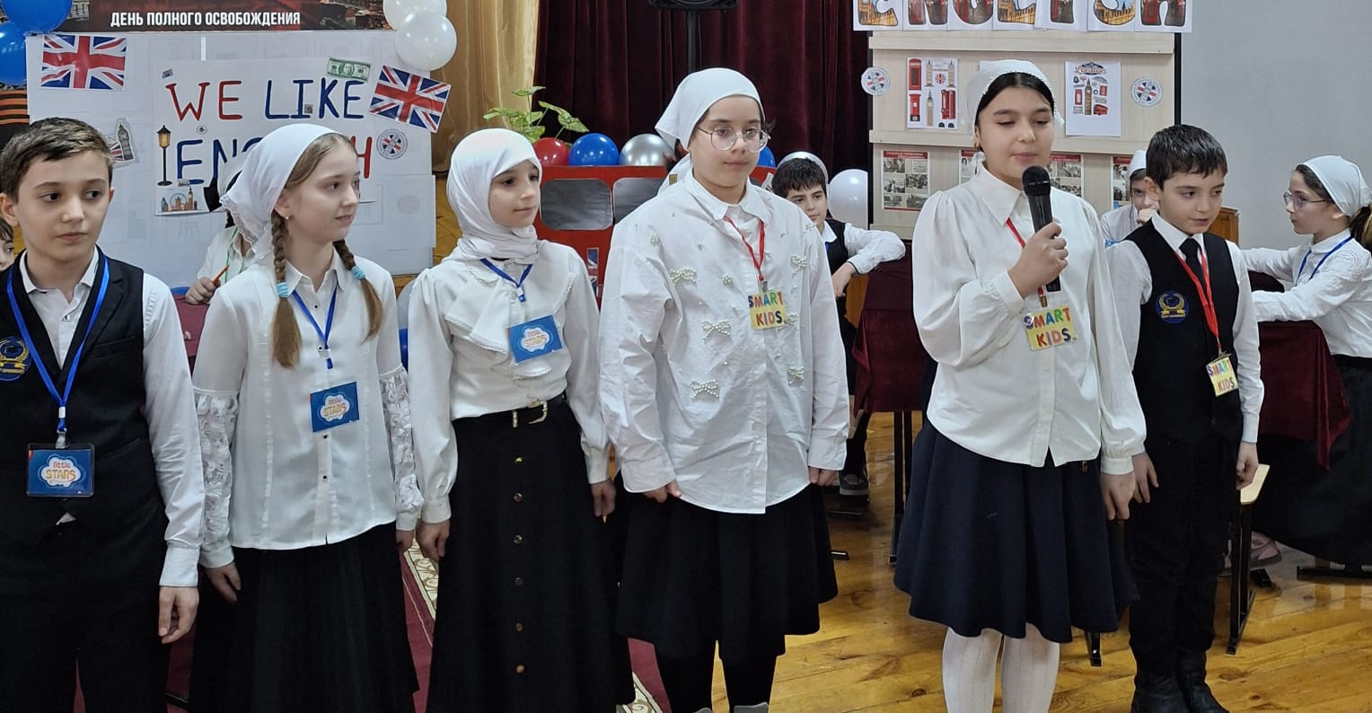 Обучение ведется на русском и чеченском языках.Изучается также иностранный (английский)язык.