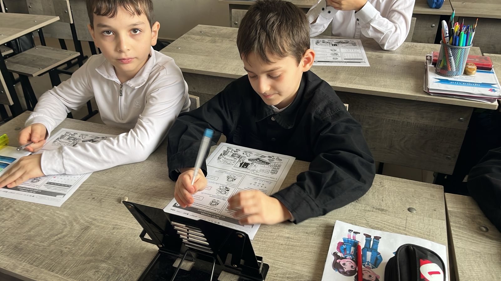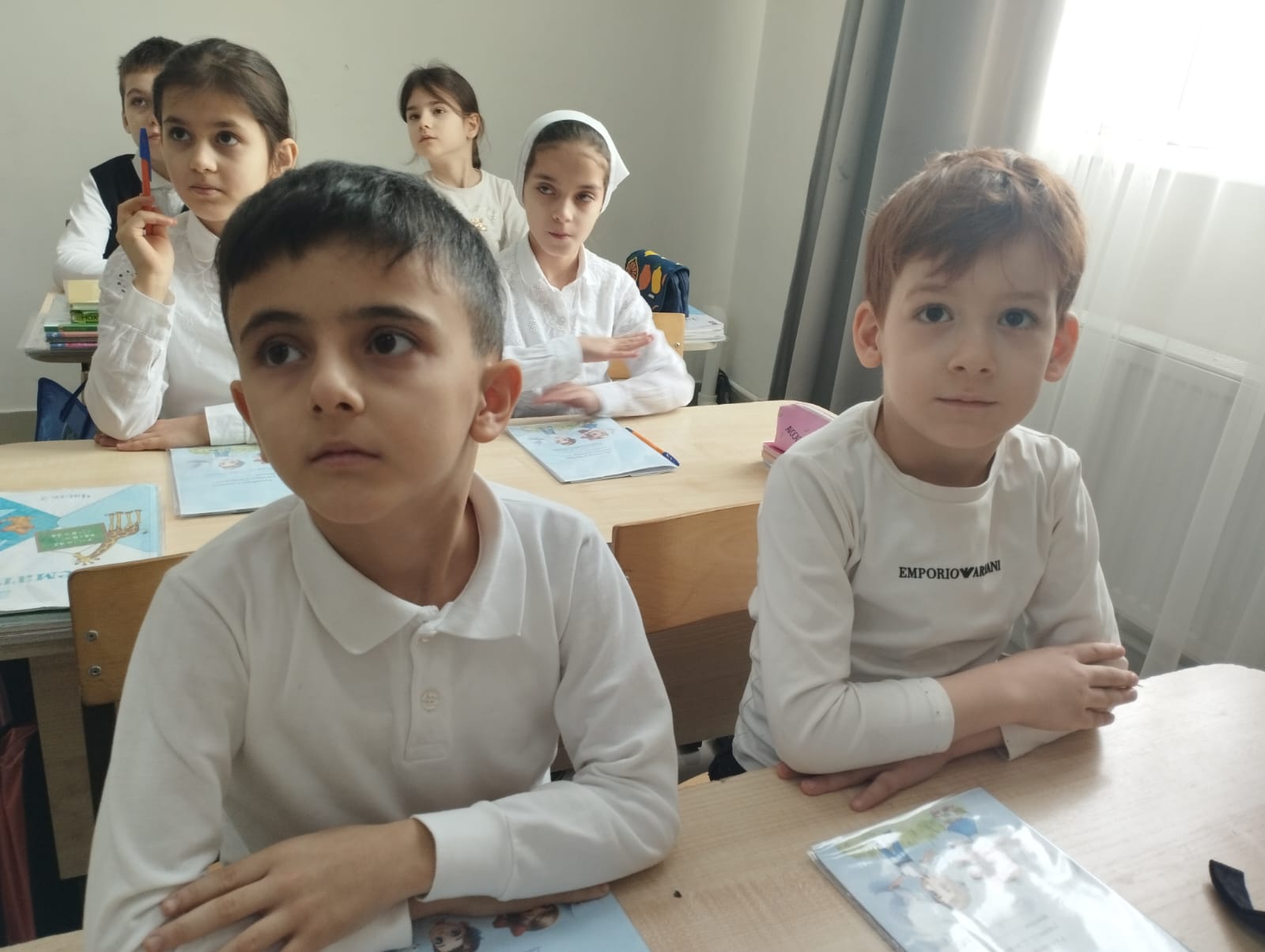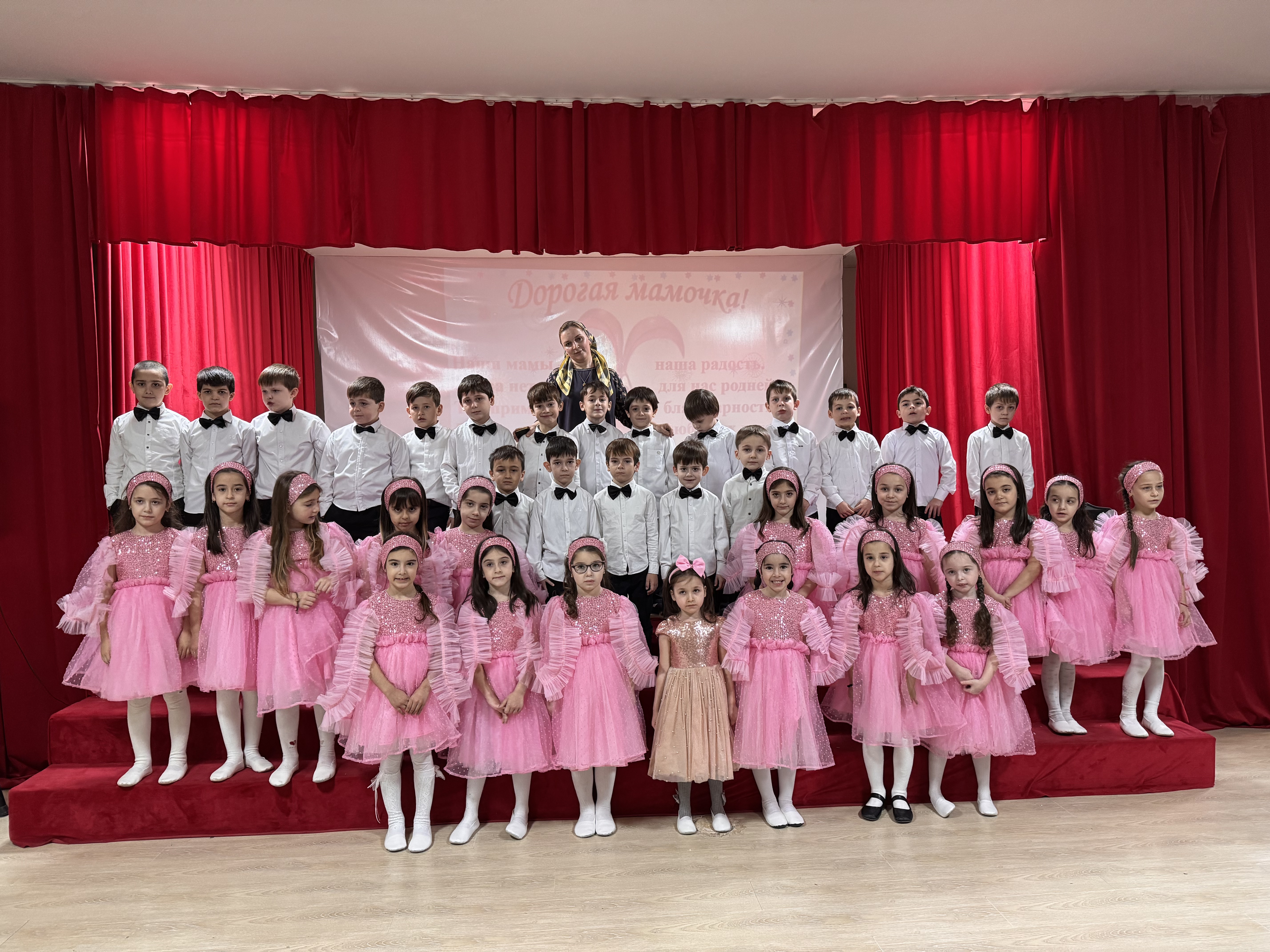 Обучение ведется на русском и чеченском языках.Изучается также иностранный (английский)язык.