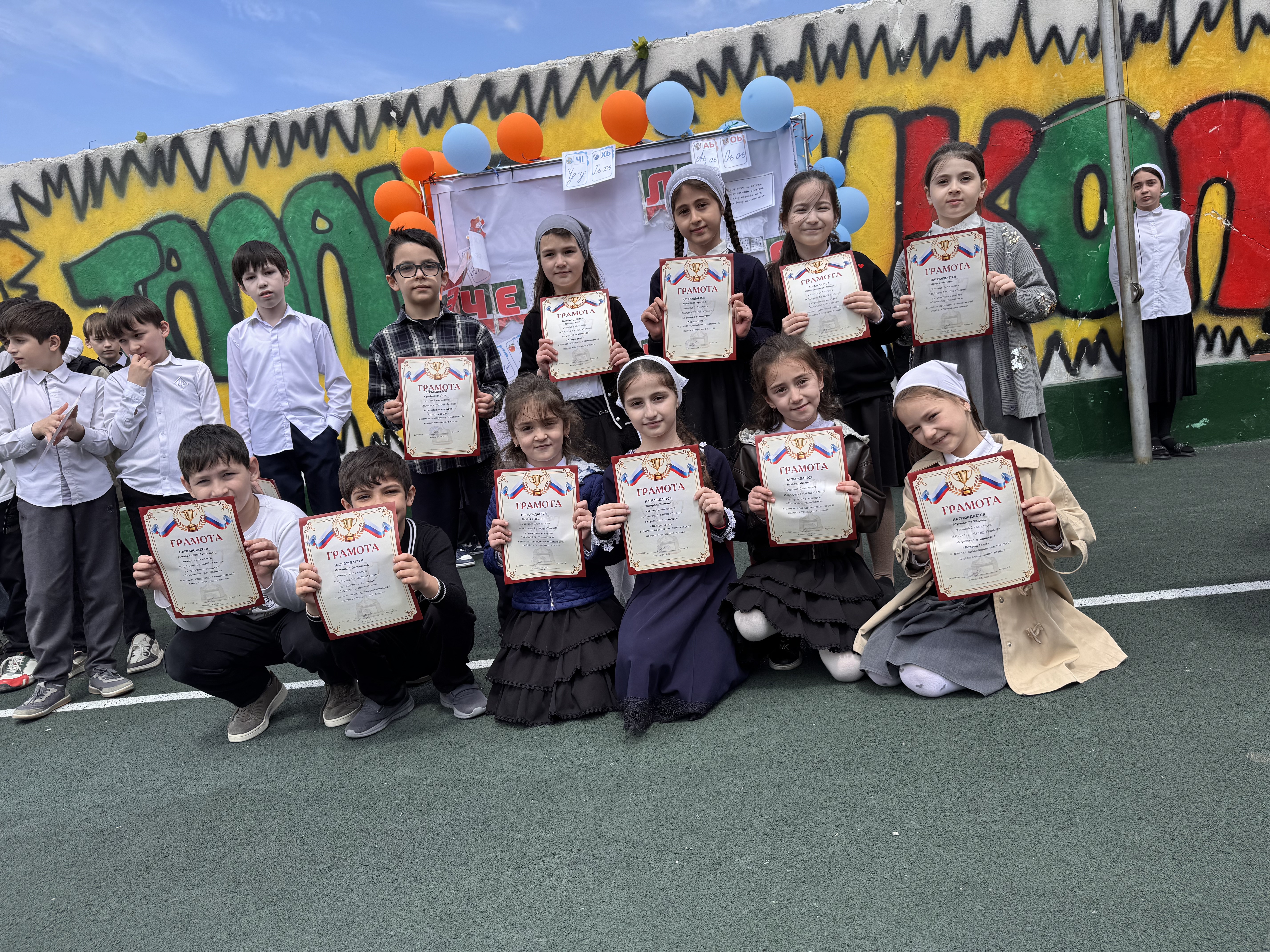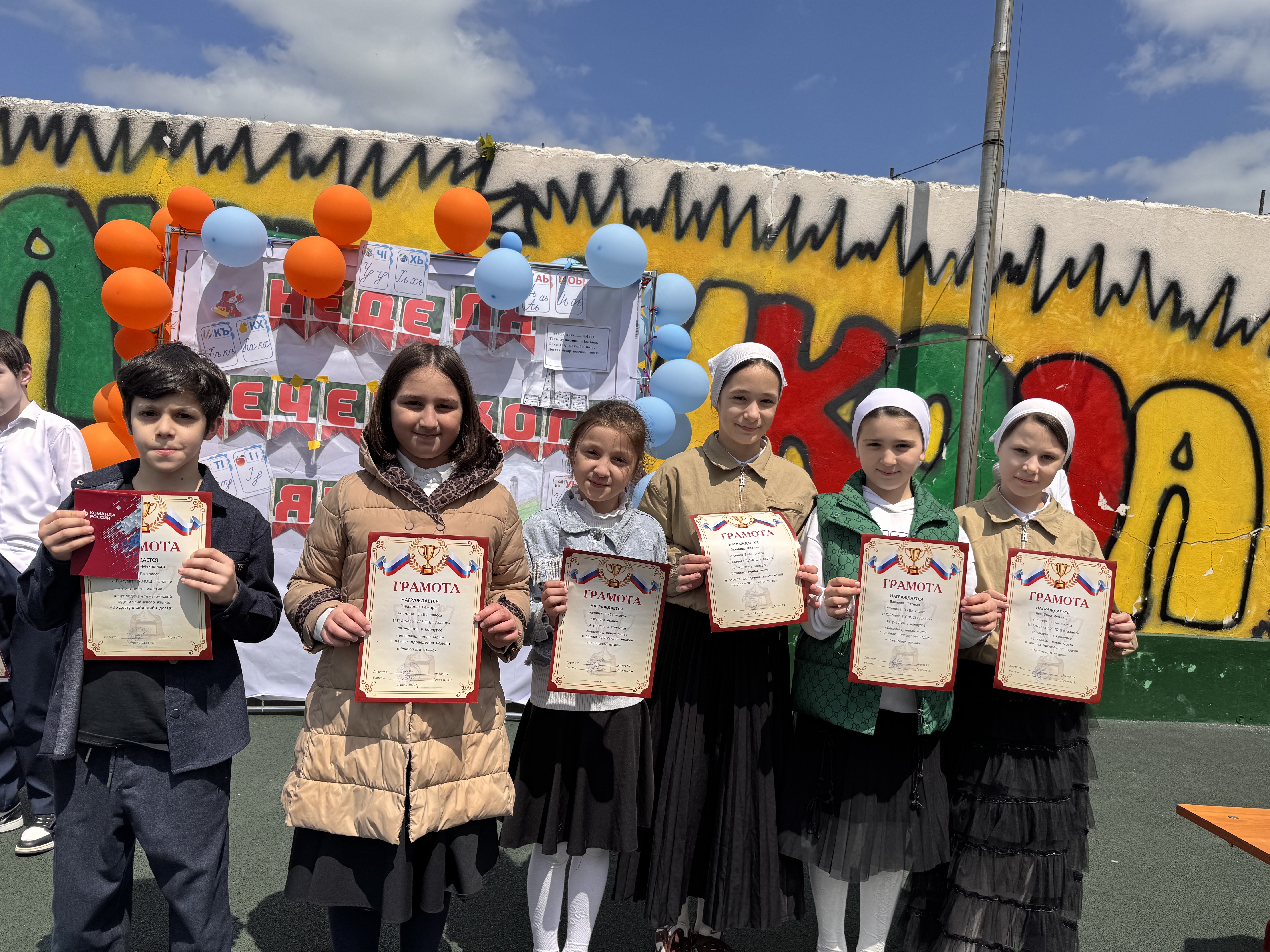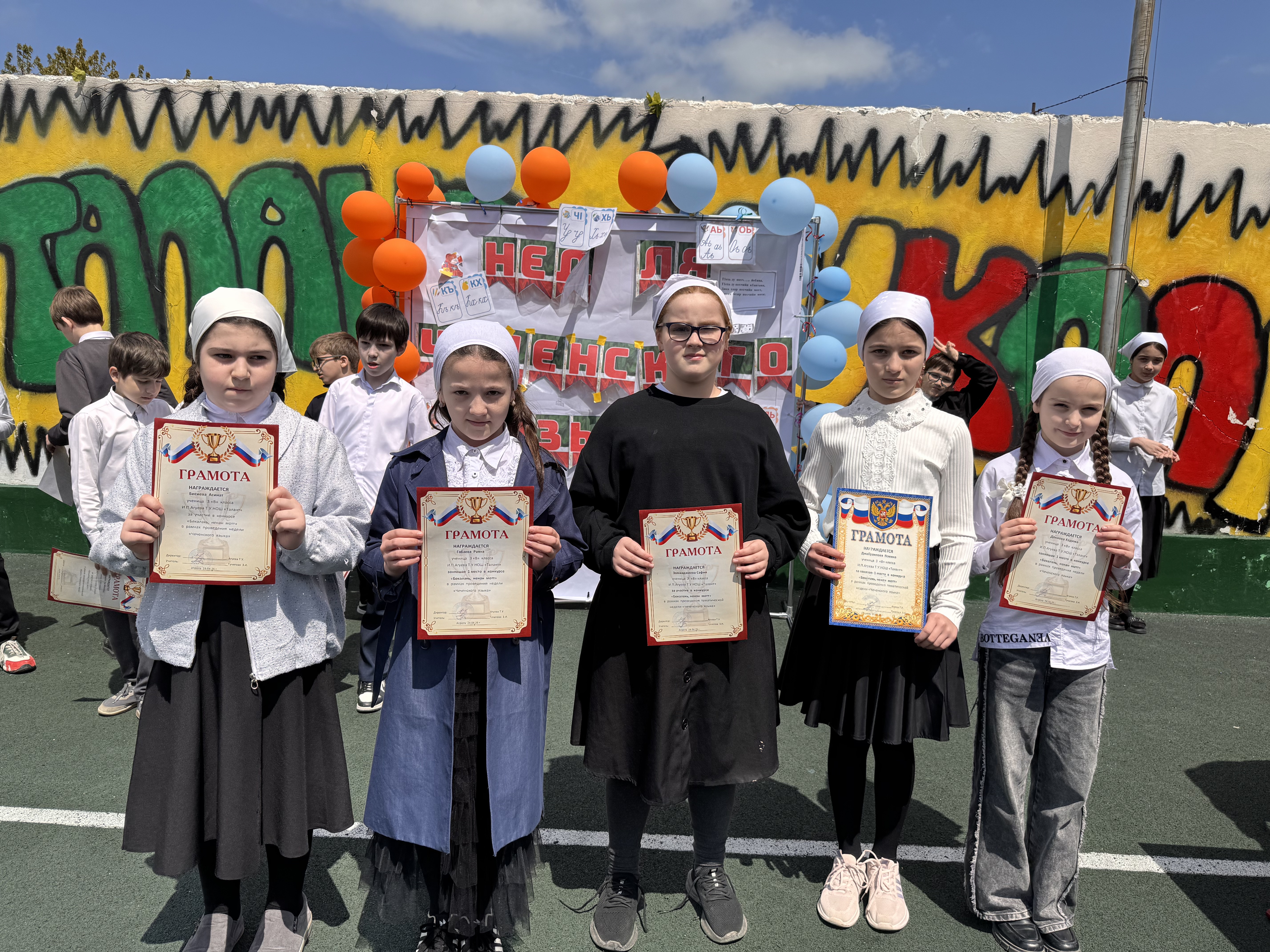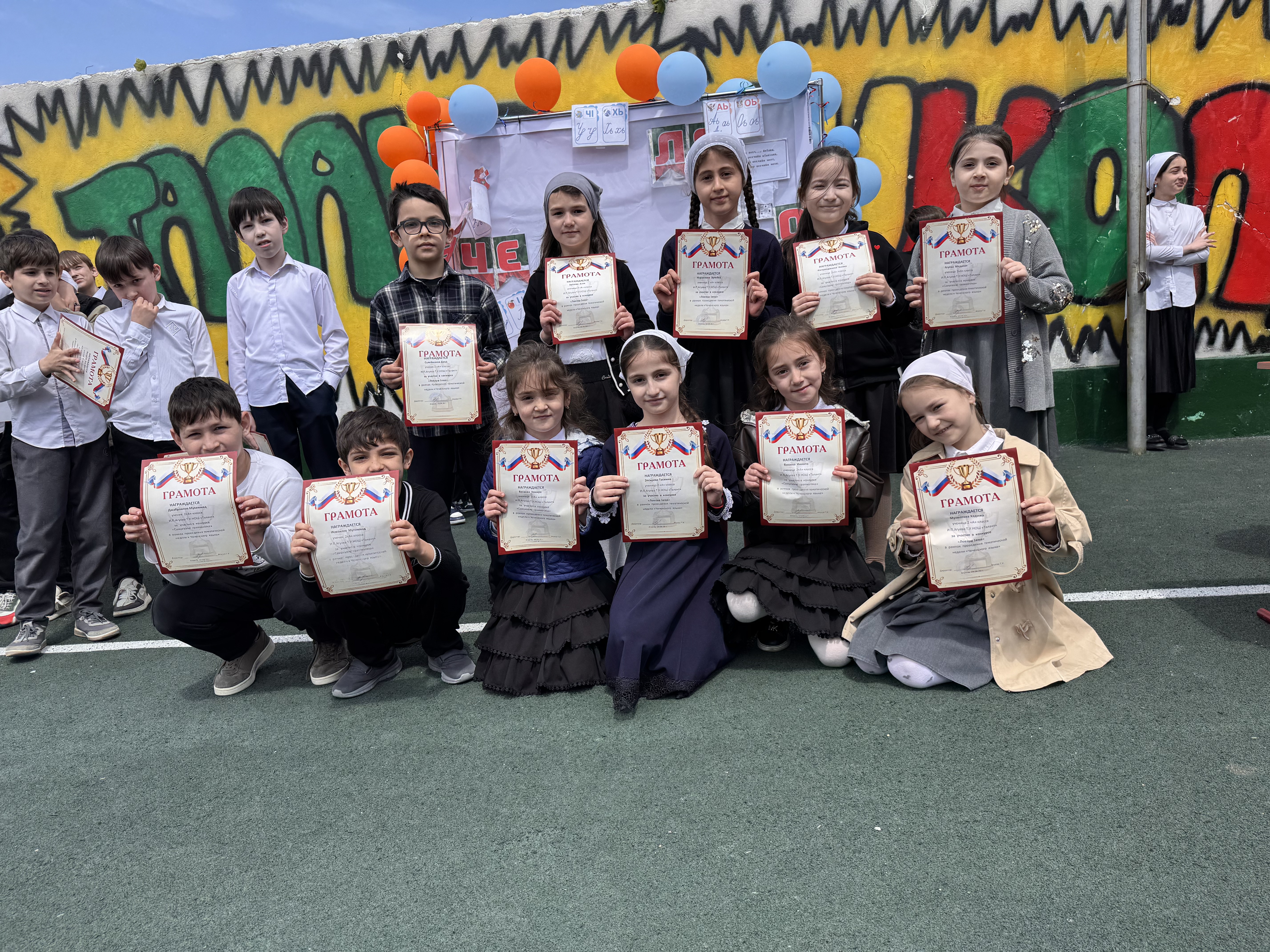 🎉Сегодня, в рамках недели чеченского языка, прошло награждение участников. Линейка началась с торжественного подъёма российского и чеченского флагов🎉