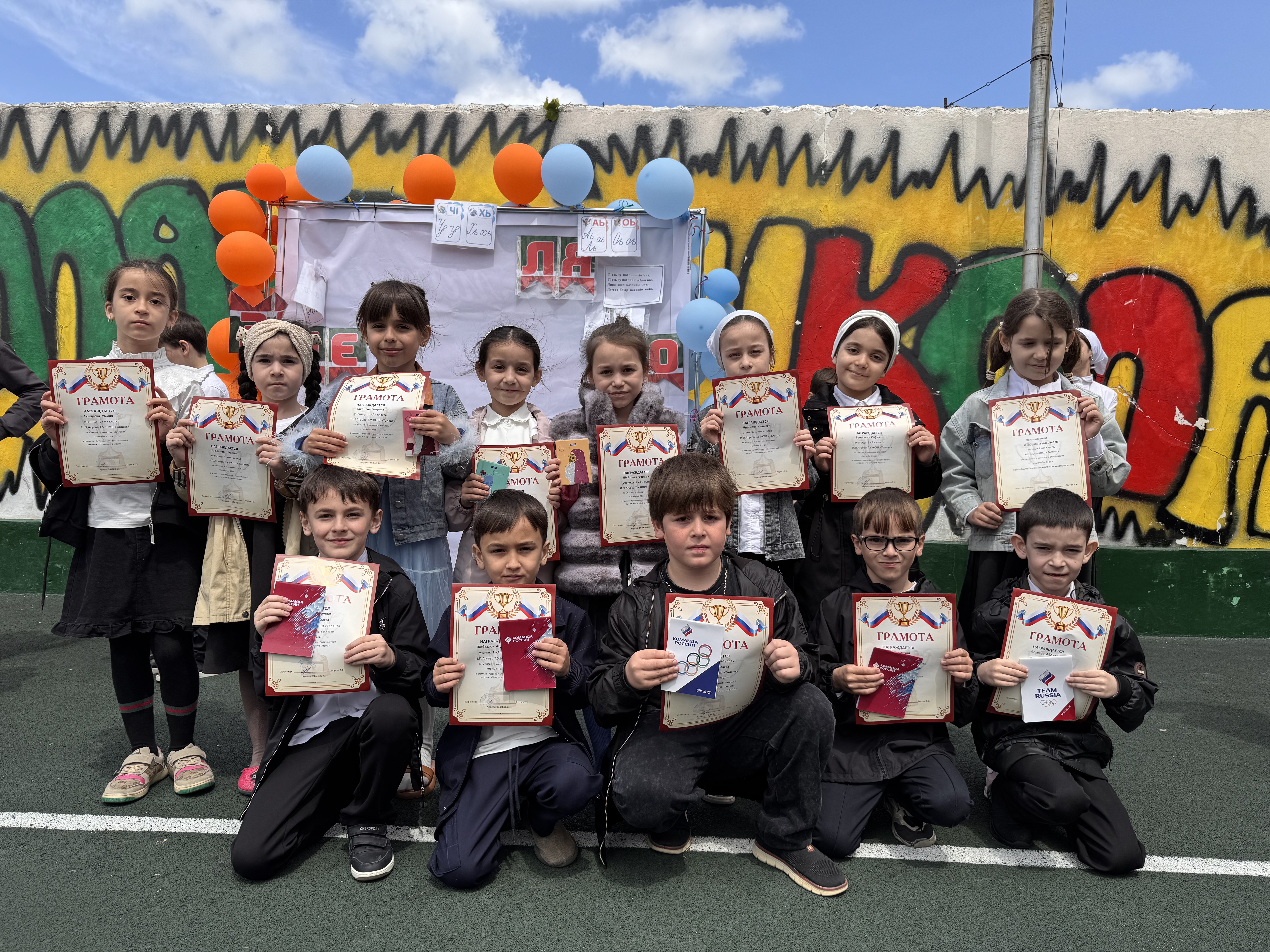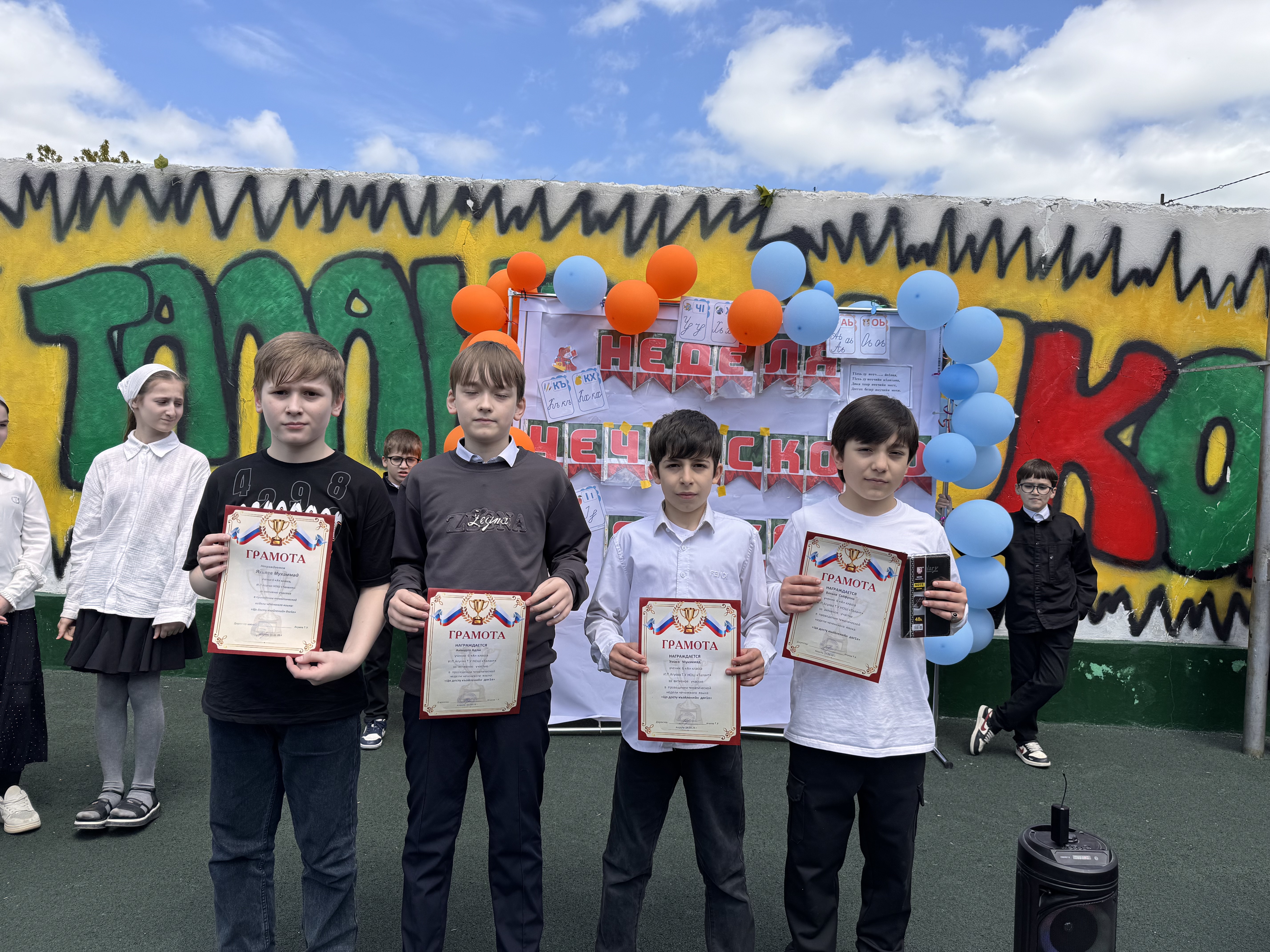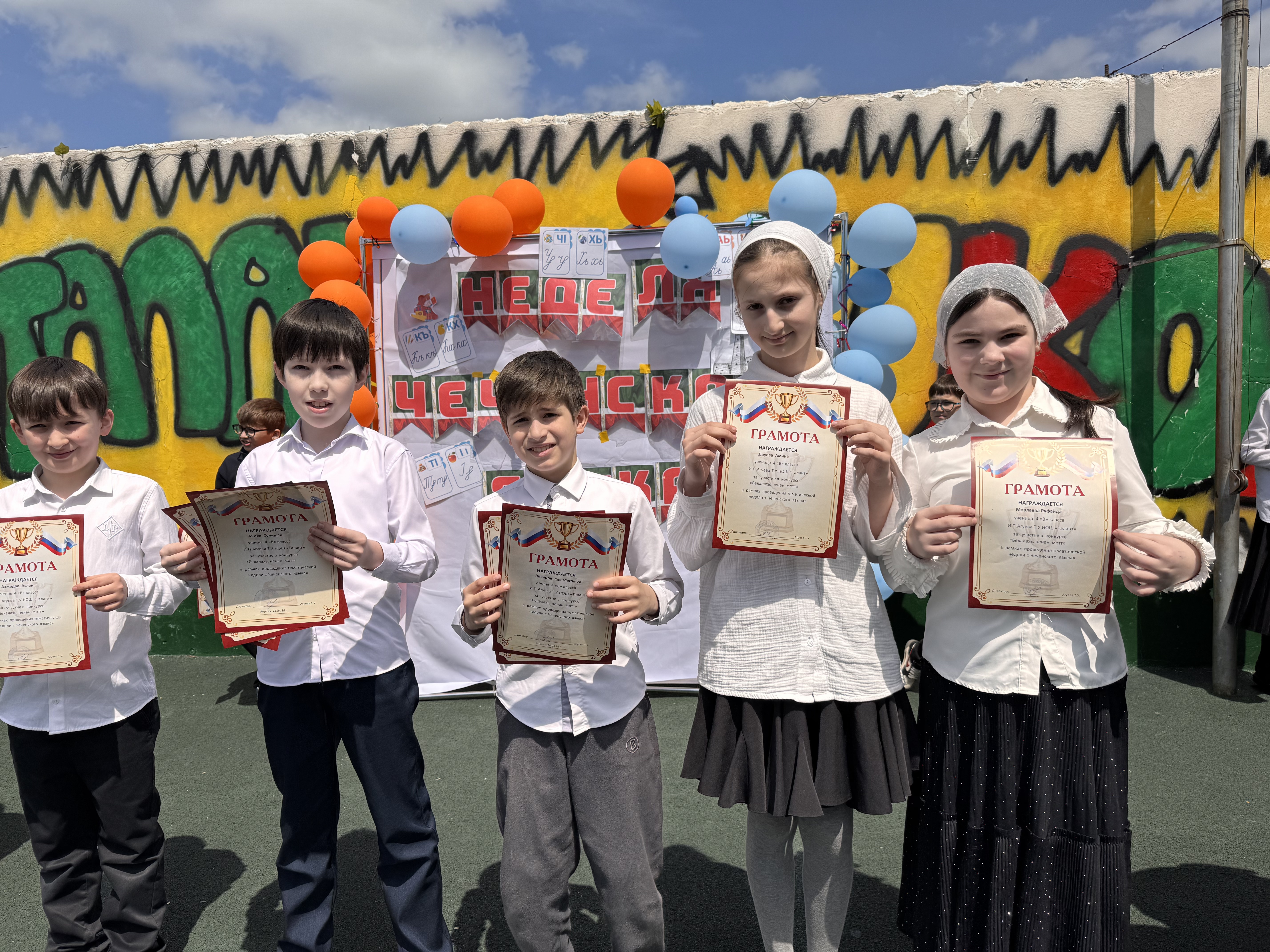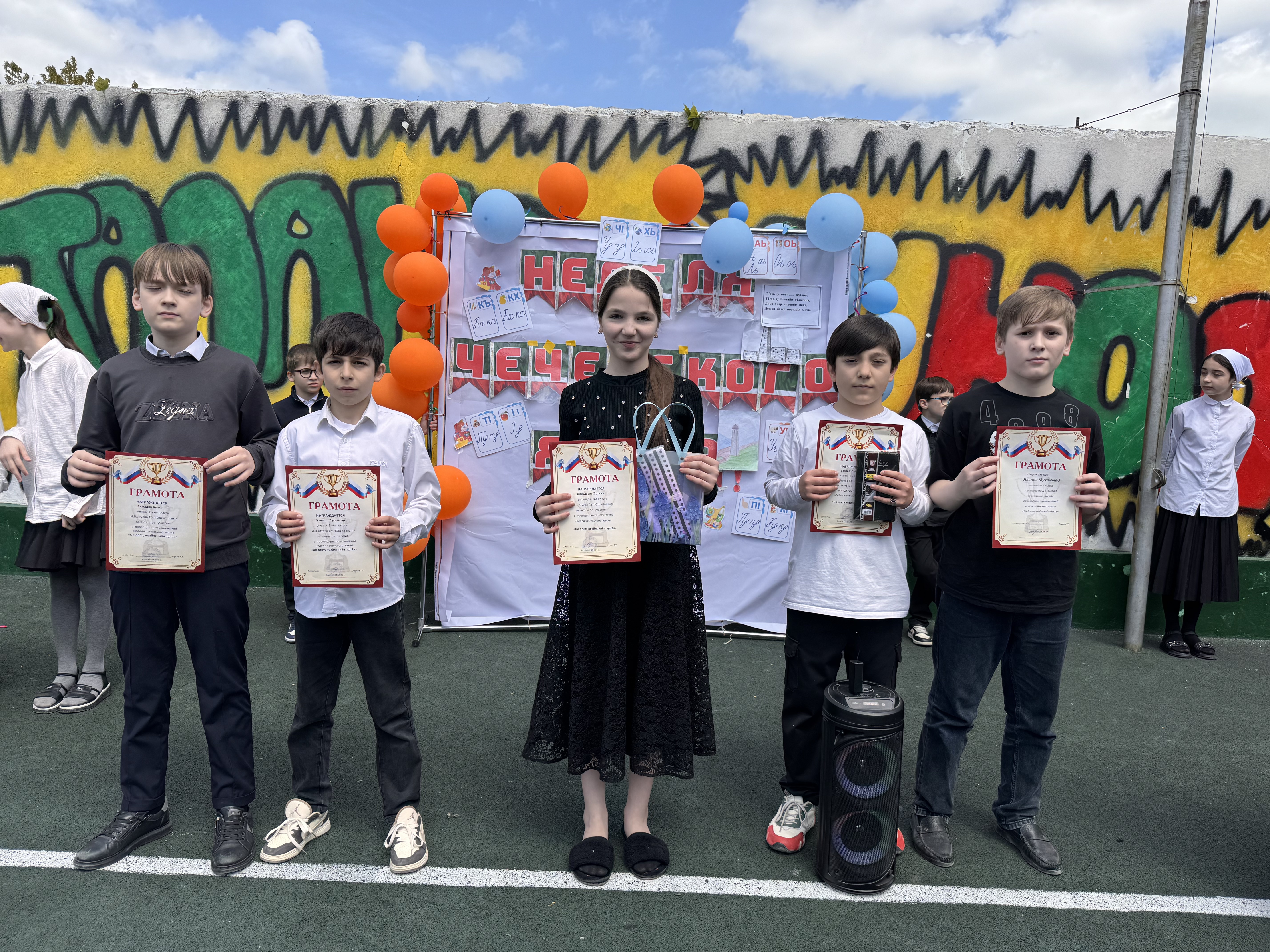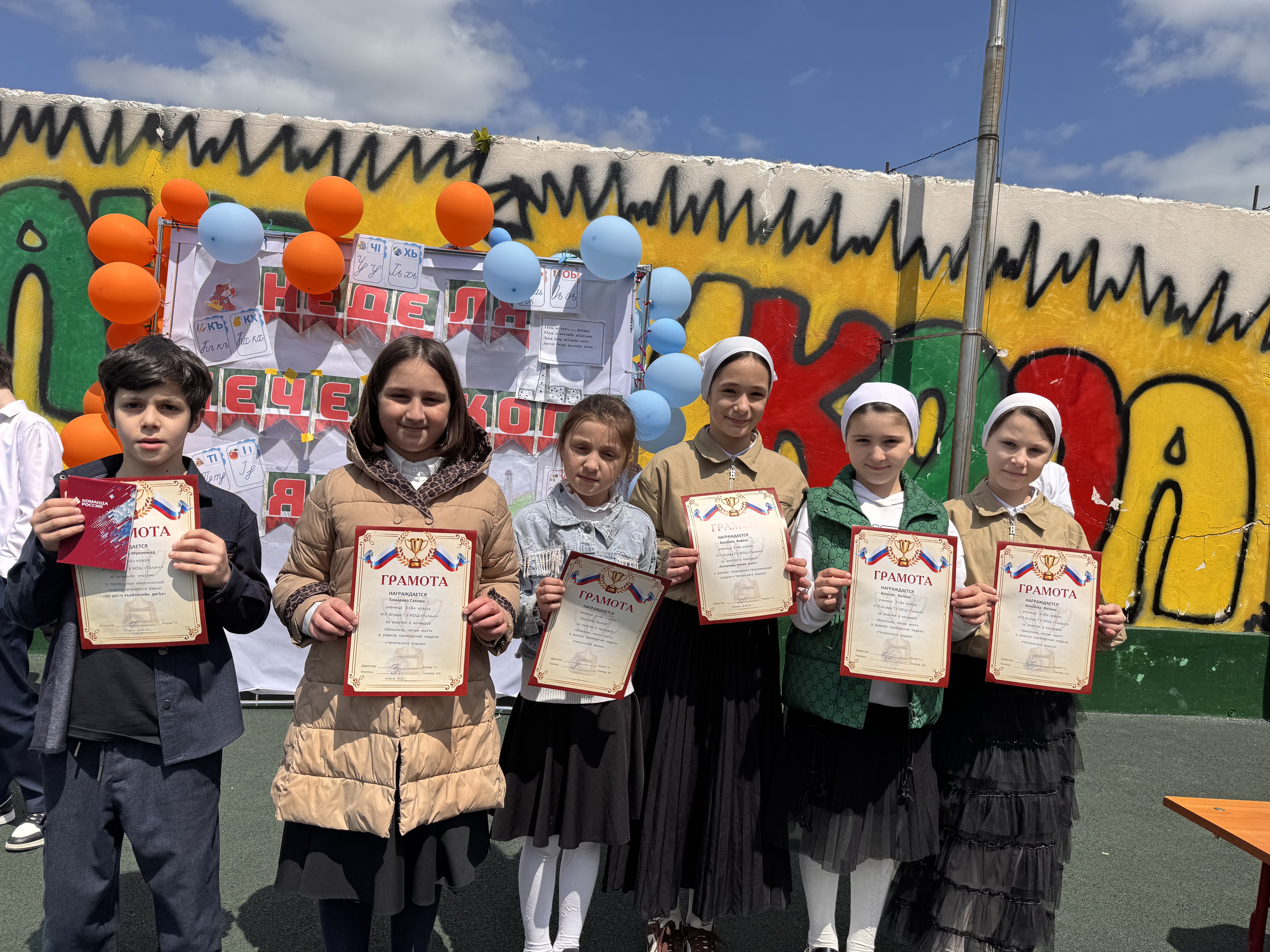 🎉Сегодня, в рамках недели чеченского языка, прошло награждение участников. Линейка началась с торжественного подъёма российского и чеченского флагов🎉
