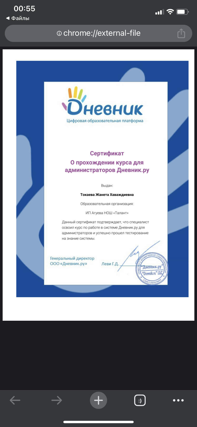 Сотрудники ИП Агуева НОШ «Талант» получили сертификаты в Дневник.ру.🔥