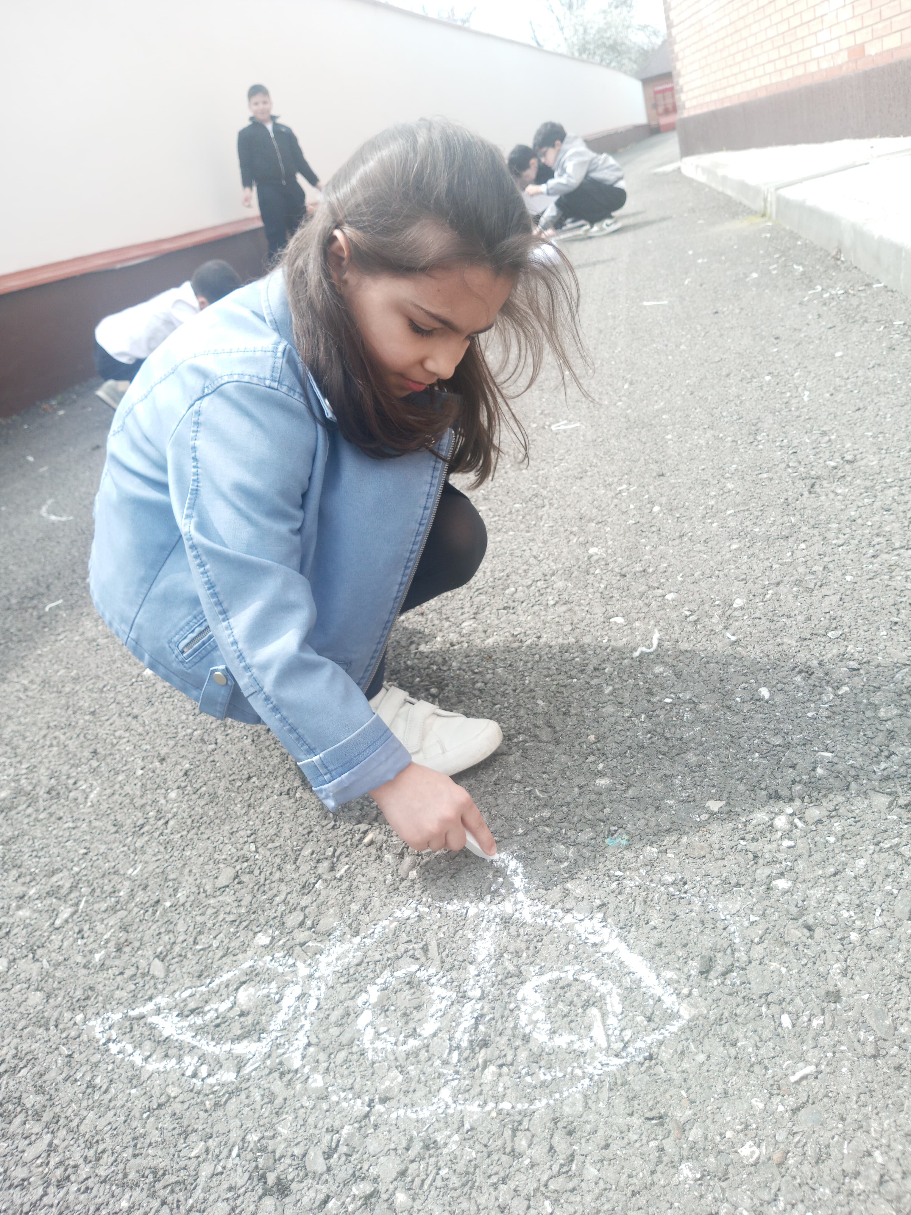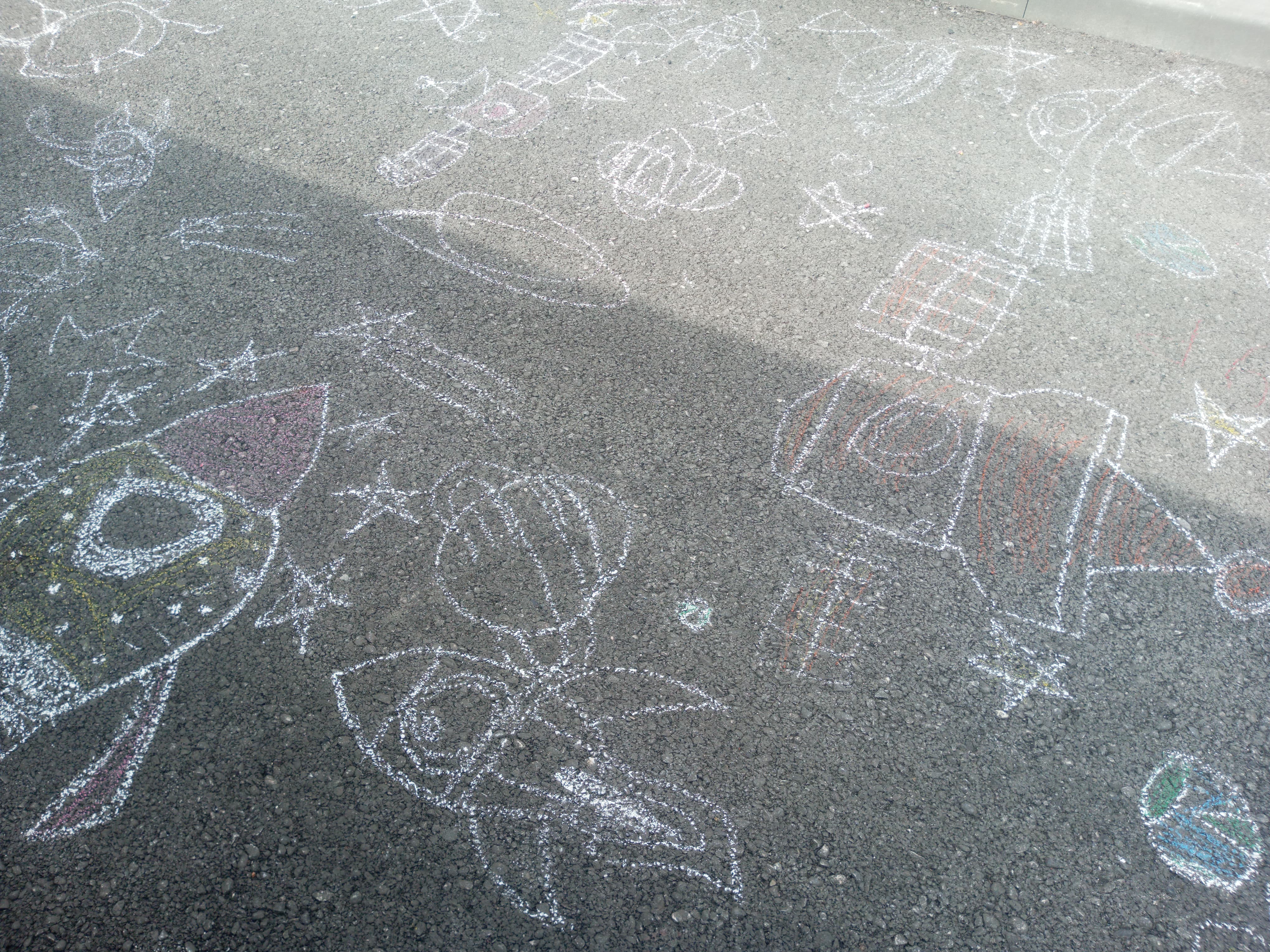 Ребята с большим увлечением играли цветными мелками, и вскоре асфальт на территории гимназии покрылся яркими рисунками. В них дети изображали ракету, небо со звездами, нарисовали космонавта. Детское творчество в технике коллективного рисунка мелом на асфальте позволяет не только проявить творческие способности, но зарядиться хорошим настроением и радостью от собственных «шедевров». С днем космонавтики!